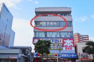 1階にブックオフが入るビルの4階です。ビルの前向かいにはダイエーがあります。