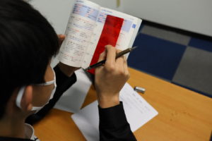 授業の確認テストや予習プリントを行い間違えた問題をまとめておきます。95%以上を合格ラインとしています。また、授業前に講師に質問もできます。どんなことでもご相談ください!